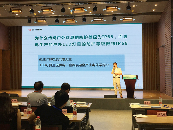 勇電大功率系列LED燈具內(nèi)置二次封裝模塊光源,可以組成不同形狀不同用途的大功率LED燈具如線條燈、洗墻燈等,耐溫200℃以上的防水封裝材料使得燈具的防塵、防水達(dá)到IP68等級(jí)。李總監(jiān)在現(xiàn)場(chǎng)通過與案例相結(jié)合講解了勇電大功率的防水性能在不同場(chǎng)合的應(yīng)用。