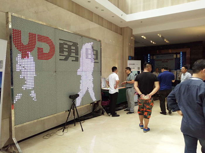 在燈具展示區(qū),與會人員可以通過簡單的肢體動作來控制屏幕燈光的的變化,近距離體驗勇電體感互動控制系統(tǒng)所帶來的新奇有趣的燈光玩法。