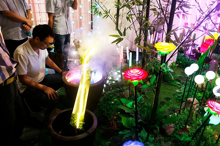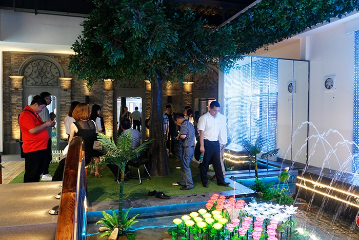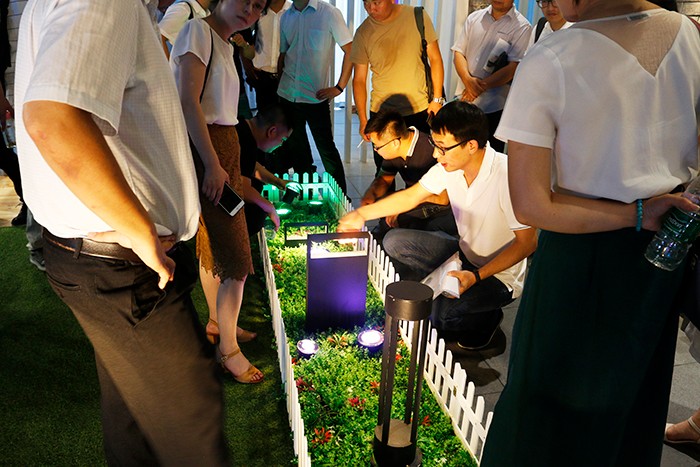 在30日上午新產(chǎn)品發(fā)布環(huán)節(jié),參會人員一行前往杭州星河燈具市場,先后參觀了勇電及法拉沃展廳。