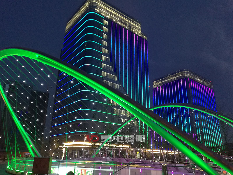 2、幕墻內(nèi)透安裝:有些幕墻玻璃顏色不深、透明性好,可以考慮將光源安裝在幕墻的內(nèi)側(cè),這種方式不會(huì)對(duì)幕墻造成任何外觀上的變化,白天隱形效果好;幕墻內(nèi)側(cè)安裝,可以用拉鋼絲繩的方式,二次封裝LED點(diǎn)光源設(shè)計(jì)有鋼絲卡扣,拉好鋼絲直接定好位置扣上去即可,方便快捷,不影響采光。