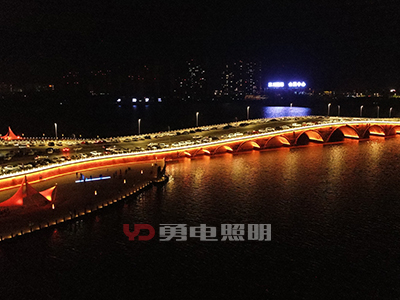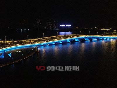 天地橋橋體部分跨度極長(zhǎng),橫跨海面,是整個(gè)照明工程的重要組成部分。
