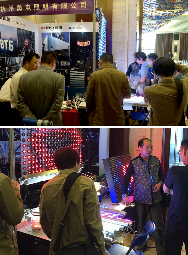 與此同時,會議之外還設定了會員單位展臺,勇電照明此次展示的有線條燈、大功率洗墻燈等多款戶外照明產(chǎn)品,參展客戶對公司的產(chǎn)品產(chǎn)生了濃厚的興趣,針對大功率系列燈具咨詢了很多技術上的問題。