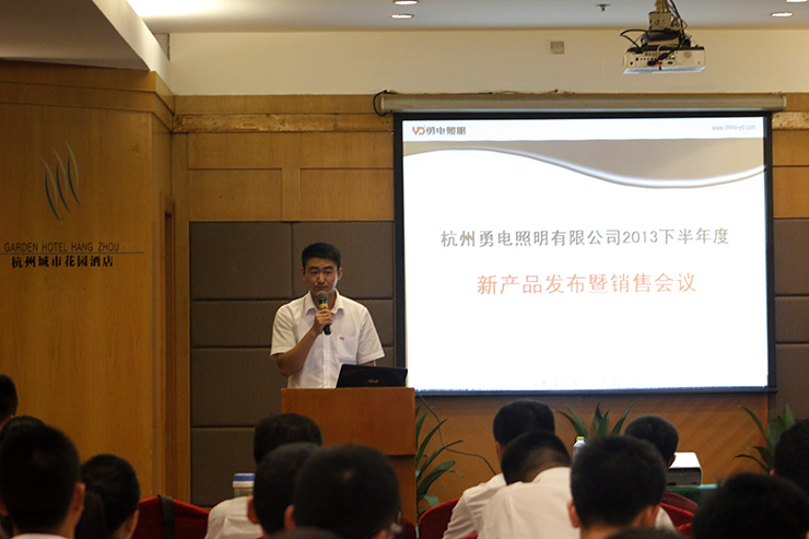 2013年7月28日,杭州勇電照明有限公司以主題為“勇電照明2013年下半年新產(chǎn)品發(fā)布暨銷售會(huì)議”在杭州城市花園酒店拉開了帷幕。參加會(huì)議的有勇電照明公司領(lǐng)導(dǎo)、代理商、各分公司代表及銷售人員。